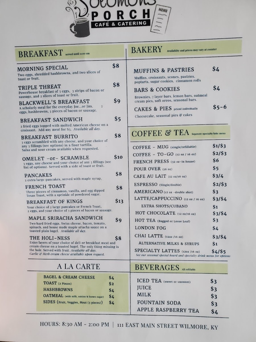 See our seasonal special board and specialty drink menu for options